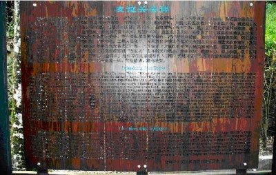 Hình 10Tấm bia gỗ viết bằng 3 thứ tiếng (Hán, Anh và Việt); nội dung tiếng Việt: