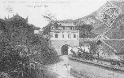 Hình 9Ta thấy kiến trúc Nam Quan ở các hình 1, 2, và 8 thì giống nhau: có hai tầng lầu và các cửa sổ hình vuông. Kiến trúc Nam Quan trong 3 hình này là một. Thời điểm được xây dựng từ năm 1883 (lúc tường bị Négrier giật sập) hiện hữu cho đến trước chiến tranh Trung-Nhật 1937.