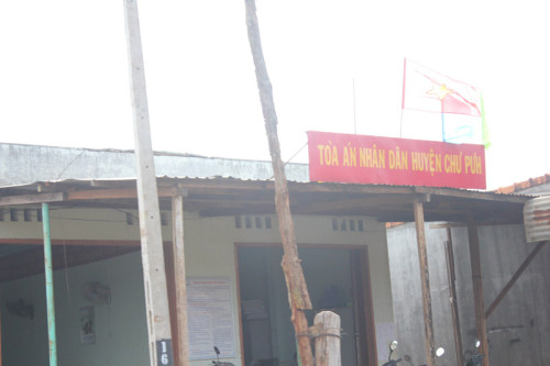 | Thân phụ phóng viên Hoàng Khương, trước toà, sau khi nghe con bị tuyên án 4 năm tù. Ảnh: Thuận Thắng. |