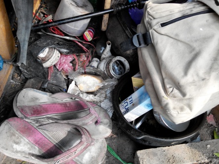 “Vợ chồng bỏ nhau, con gái thì lo phận nhà chồng, đứa con trai thì không có khả năng nuôi bố nữa, ông ấy còn biết nương tựa vào ai? Nghĩ mà cũng tội vì ông rất hiền lành, ai cho gì cũng vui vẻ nhận. Trước đây ông hay đi cùng một người phụ nữ lượm nhặt phế liệu, nay thì không thấy. Cuộc sống trong bụi cây của ông ấy đã diễn ra hơn 4 năm rồi”, bà D. số nhà 104, dốc 376 đường Bưởi cho hay.