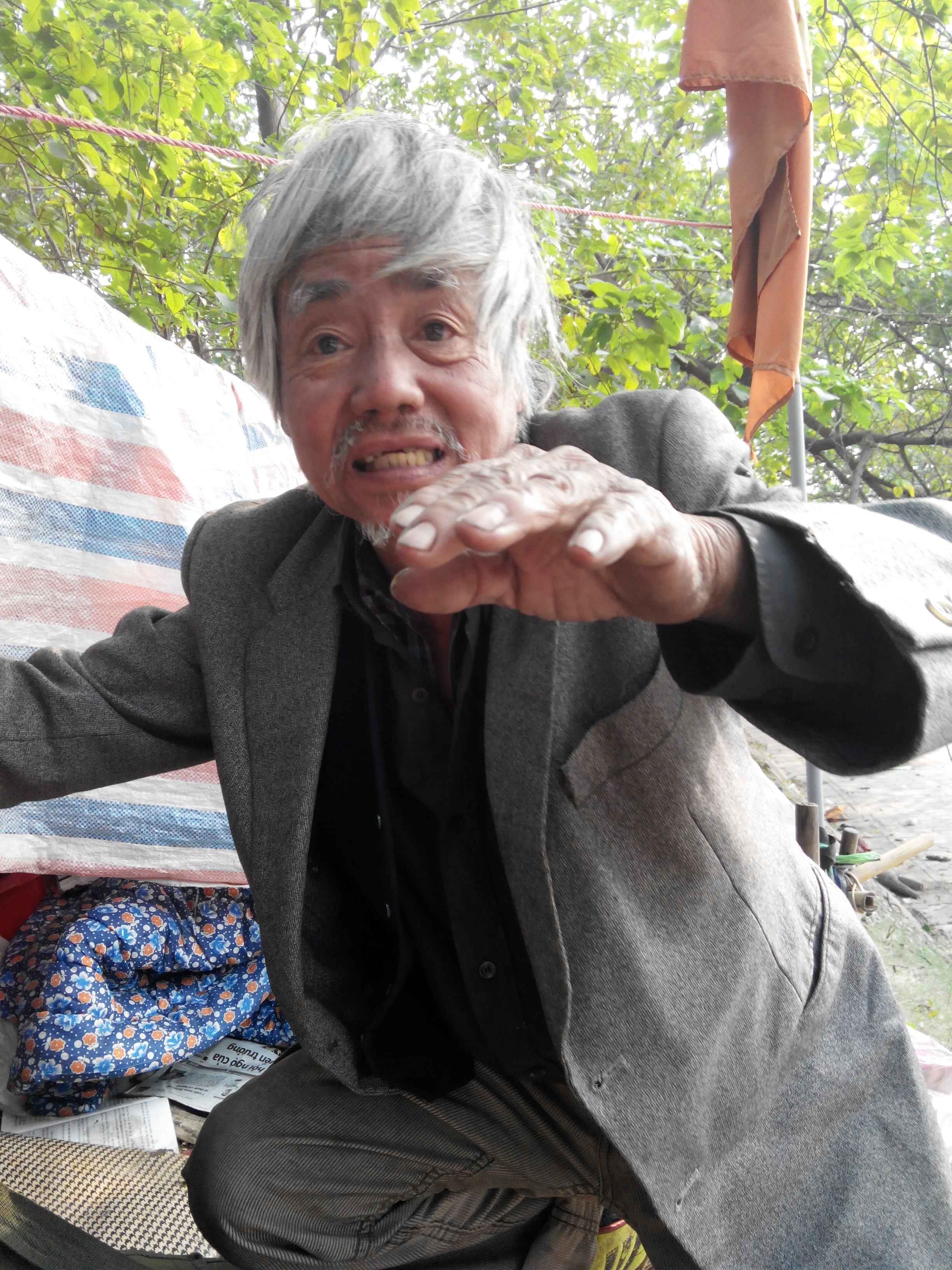 Việc nhặt rác mưu sinh hàng ngày của ông Tuất hôm được, hôm không. Có hôm, giỏi lắm cũng chỉ kiếm được 10 nghìn đồng là coi như may mắn. Miếng cơm, manh áo hàng ngày ông phải đi xin, có hôm đói quá ông còn nhặt cả thức ăn người ta đổ đi để mang về đun lại rồi ăn qua ngày.