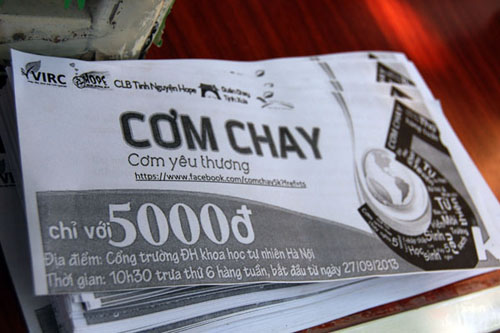 --Nghĩa cử cao đẹp: Cơm chay 5.000 đồng giữa Thủ đô(PetroTimes) - Như thường lệ vào mỗi buổi sáng thứ Sáu hằng tuần nhóm tình nguyện Hope lại tất bật thực hiện hoạt động bán “cơm chay” cho các bạn sinh viên, người lao động nghèo với mức giá 5.000 đồng tại cổng trường Đại học Khoa học Tự nhiên (ĐHQG Hà Nội).